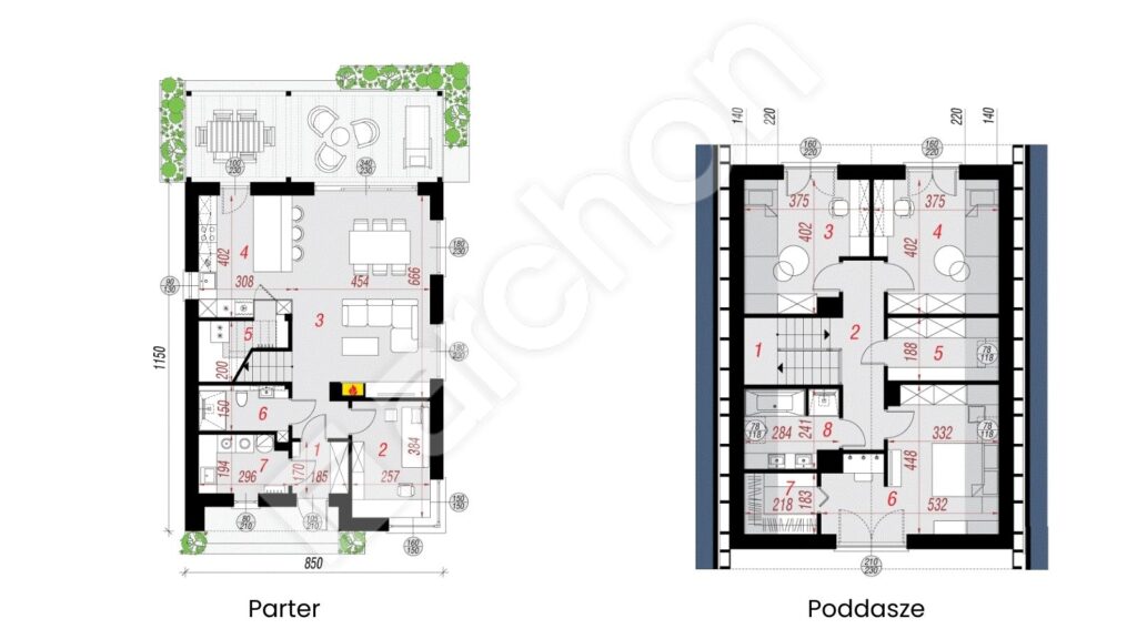 Dom w malinówkach 26 będzie odpowiednią propozycją dla rodzin, które chcą domu z poddaszem użytkowym i kompletnym, wygodnym programem: wspólna strefa dzienna z kominkiem, praktyczne zaplecze oraz prywatna część nocna. To projekt domu dla osób ceniących równowagę między estetyką a funkcjonalnością – bez nadmiaru, ale z rozwiązaniami, które realnie ułatwiają codzienność.